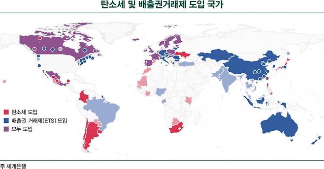 미국은 EU에 대응해 청정경쟁법과 외국오염관세법(FPFA) 등의 도입을 고려하고 있다. 미국과 유럽뿐 아니라 여타 국가도 각국의 사회적·경제적 여건을 고려해 탄소세를 마련하고 있다. 세계은행에 따르면 2025년 2월 13일 기준 탄소세를 도입한 국가 또는 지역은 39곳이며, 배출권거래제(ETS)를 시행하는 국가 또는 지역은 한국을 포함해 36곳이다. 유럽은 각 경제권의 배출권거래제를 활용해 탄소세를 산정한다. 이에 따라 여타 국가도 시장가격(배출권거래제)이나 탄소집약도를 기준으로 탄소세를 부과하는 방안을 검토하고 있다.
