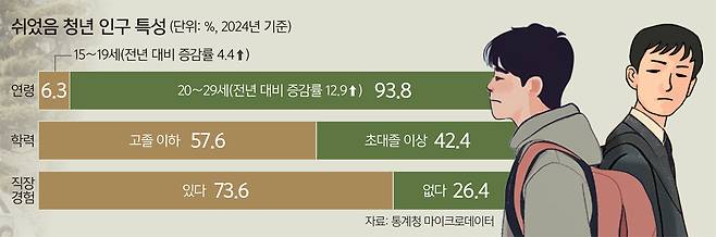 A씨는 이른바 ‘고졸 쉬었음’ 청년이다. 올해 1월 43만4000명에 달한 ‘쉬었음 청년’(15∼29세)에 속하는 그는 진학도 취업 준비도 하지 않고 일시적으로 쉬고 있다. ‘쉬었음’은 취업자도 실업자도 아닌 비경제활동인구로 분류된다. 그는 “학기 중 취업한 뒤 저처럼 그만둔 친구들이 꽤 있다”는 말을 남겼다.
