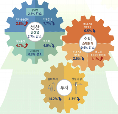 1월 전산업 생산은 마이너스 2.7%로 코로나19 대유행이 시작되던 지난 2020년 2월 이후 4년 11개월 만에 가장 큰 폭으로 떨어졌습니다.