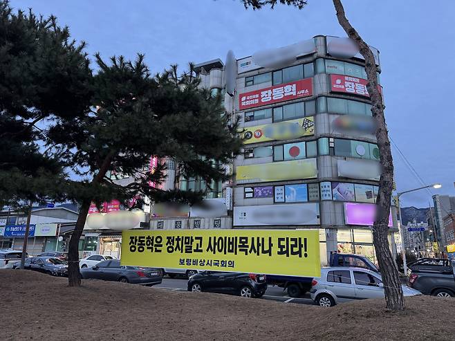 현수막을 건 보령비상시국회의 측 관계자는 <오마이뉴스> 와의 통화에서 "보령은 대천해수욕장이 있고 보령 머드 축제가 유명하다. 보령시민으로 자부심을 가지고 살고 있다"라면서 "그런데 장동혁이라는 인물이 뜬금없이 나타나 국회의원이 됐다. 최근에는 극우 집회에 나가서 지역 정서와는 전혀 맞지 않는 말들을 쏟아내고 있다. 보령시민으로서 부끄럽다"고 비판했다. 오마이뉴스>