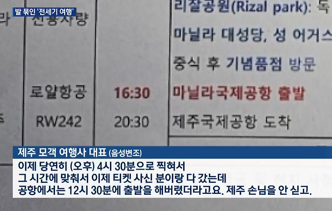 하지만 필리핀 로얄항공 측은 "비행 일정 변경은 없었다"고 말했습니다. 여행사 측에서 시간을 잘못 인지했다는 겁니다.