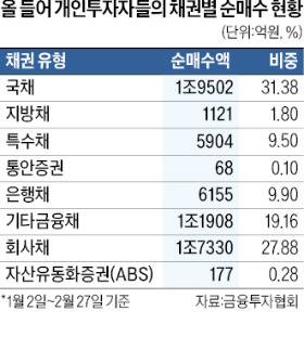 올들어 개인 채권 6.2조 사들여