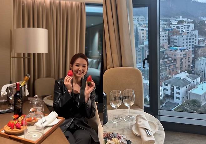 영상에는 서울 중구의 한 5성급 호텔에서 행복한 시간을 보내는 오정연의 모습이 담겼다.