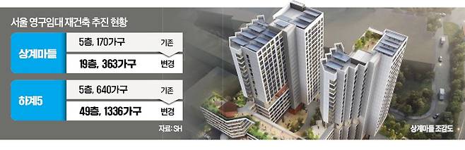 상계마들은 오는 7월께까지 이주를 마치고 연내 철거에 들어가 2028년 준공하는 게 목표다. 하계5단지 재정비 사업 기간은 2029년까지로 잡혀 있다. 업계 관계자는 “영구임대는 고령의 저소득층 임차인이 많아 기존에 살던 구역을 잘 벗어나려 하지 않고, 재건축 이후 임대료 상승에 대한 우려도 크다”며 “이런 우려를 불식하고 이주 절차가 얼마나 매끄럽게 이뤄지느냐가 관건”이라고 말했다.