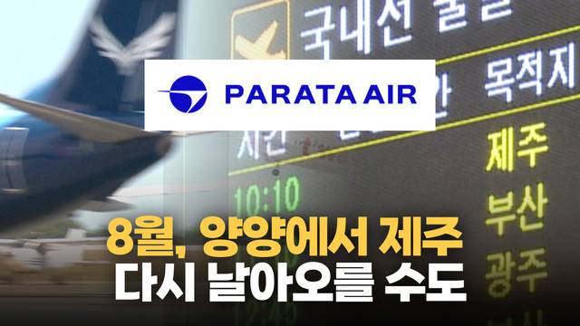 양양국제공항에서 중단된 양양~제주 항공편이 오는 8월, 2년 만에 운항을 재개할 전망입니다. 도에 따르면 플라이강원을 인수한 파라타항공이 국토교통부 면허 변경 승인 후 운항을 시작할 계획이라고 알렸습니다.