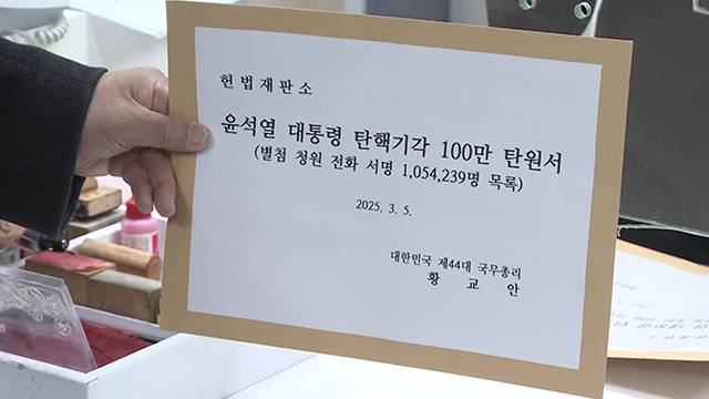 황 전 총리는 105만 4,239명(누적 약 170만명)이 탄원서에 이름을 올렸다고 주장하며 “만약 헌재가 탄핵 소추를 인용한다면 걷잡을 수 없는, 번져가는 폭동이 일어날 것이다. 그 누구도 통제할 수 없을 것”이라고 주장했습니다.