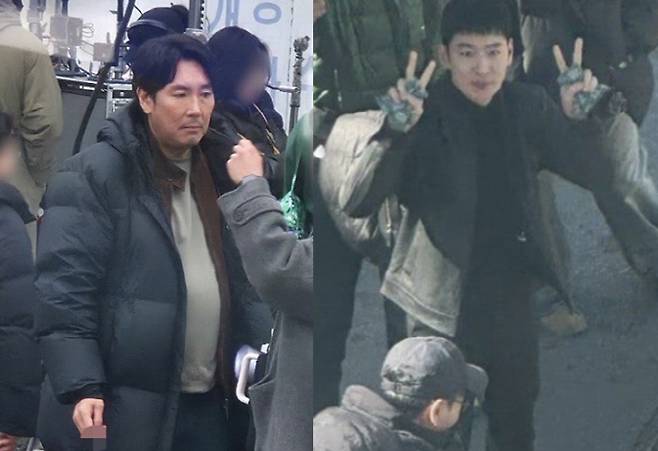 공개된 사진 속에는 살찐 조진웅의 모습과 핫팩을 들고 브이 포즈를 하는 이제훈의 모습이 담겨 있다.