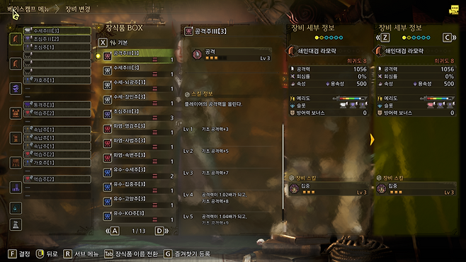이 때 몬헌 아이템 세팅이 초보자에게 허들로 작용하고 있다. 몬헌의 아이템 세팅은 다른 게임들과 다소 다르다. 최상위 무기, 방어구보다는 유용한 스킬에 맞춰 세팅하기 때문이다.