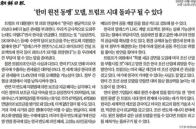 조선 = '한미 원전 동맹' 모델, 트럼프 시대 돌파구 될 수 있다