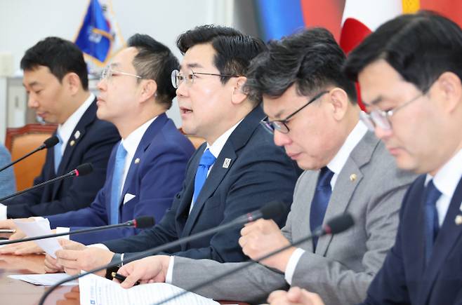 [더불어민주당 박찬대 원내대표가 6일 서울 여의도 국회에서 열린 정책조정회의에서 발언하고 있다. (사진=연합뉴스)]