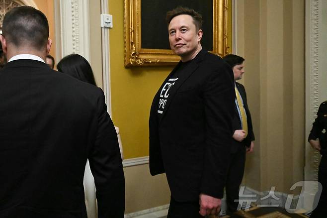 (워싱턴 AFP=뉴스1) 우동명 기자 = 일론 머스크 미국 정부 효율부 수장이 5일(현지시간) 워싱턴 의사당의 공화당 상원 운영위원회에서 비공개 회의를 마친 뒤 떠나고 있다. 2025.03.06