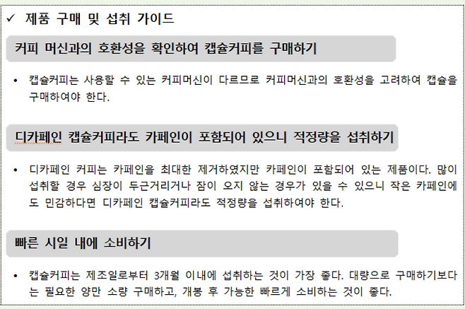 또 디카페인 캡슐커피라도 카페인이 일부 포함돼 있을 수 있으니 적정량을 섭취할 것을 당부했습니다.
