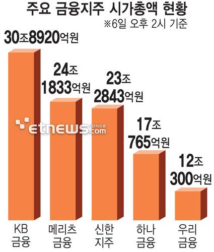 대장주 KB, 시총 10위로 밀려