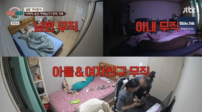 아들의 간식 챙기기는 물론 커피랑 담배까지 사다주는 아내의 모습에 가사조사관들은 입을 다물지 못했다. 남편은 "아들한테 남들이 봐도 그렇고 너무 심하다. 너무 (좋아) 죽는다. 대통령도 못 말린다. 나이가 이제는 서른인데 다 큰 애를 저렇게 막 어와둥둥한다"라며 혀를 찼다.