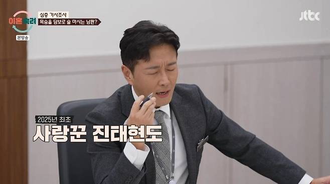하지만 가사 조사를 통해 아내의 문제점이 밝혀지며 현장 분위기가 반전됐다. 남편 측 가사조사관 진태현은 아내 최미화씨를 향해 "가장 싫어한다. 제가 아내(박시은)한테 화를 잘 안내는데, 영상을 끊고 밖에 세번 나갔다왔다. 아내가 왜 나갔다 오냐고 하는데 2025년 최초로 아내한테 가만히 좀 있어봐 했다"라고 고백했다. 최미화씨는 "20년 광팬인데"라고 했지만 진태현은 "20년 광팬도 소용없다"라고 단호하게 말했다.