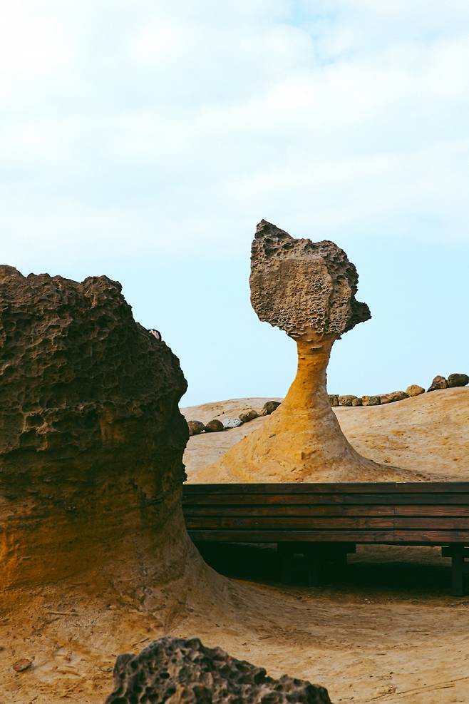 타이베이 여행은 도심에 그치지 않는다. 1시간 정도 떨어진 예류지질공원, 지우펀, 스펀, 허우통까지 포함한다. 대부분은 여행사 패키지 상품으로 만날 수 있고, 데이투어나 대중교통으로도 다녀올 수 있다. 고민 끝에 1815번 버스를 타고 예류지질공원으로 향했다. 이곳의 첫인상은 영락없는 제주도였다. 바람이 세게 불고, 돌이 많고, 바다를 곁에 뒀으니 말이다. 그리고 온통 한국인뿐이다.
