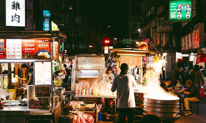 야시장은 대만의 일상을 볼 수 있는 지점이자 다채로운 맛을 경험할 수 있는 곳이다. 여행자에게 인지도가 높은 곳은 스린, 라오허제, 닝샤 야시장인데 여의치 않으면 다른 곳으로 가도 된다. 도심 곳곳에 소규모 야시장이 펼쳐져 있어서다. 즉, 머무는 숙소 근처에도 하나쯤 있을 확률이 높고 충분히 매력적이다. 그렇게 찾은 곳이 솽청제 야시장이다. 알로프트 호텔 중산 뒤편에 있고, 지하철 중산초등학교(Zhongshan Elementary School)역에서 걸어가도 된다.