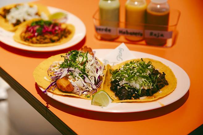 첫 방문이라면 3가지 타코와 음료 세트(450TWD, 약 1만9,900원)가 적당하겠다. 코치니타 피빌(Cochinita Pibil, 풀드 포크+살사 하바네로), 바자 크리스피 피시(Baja Crispy Fish, 흰살생선 튀김+사워크림+살사 베르데), 타이와니즈 트리파(Taiwanese Tripa)로 구성된 타코 트리오다. 특히, 타이와니즈 트리파는 대만식 간장 소스를 발라 구운 돼지 내장으로 속을 채운 타코인데 타이베이에서만 즐길 수 있는 별미다. 불맛 나는 내장과 매콤한 살사 마차(Salsa Macha)의 조합은 한국인 취향에 딱 맞을 것이다.