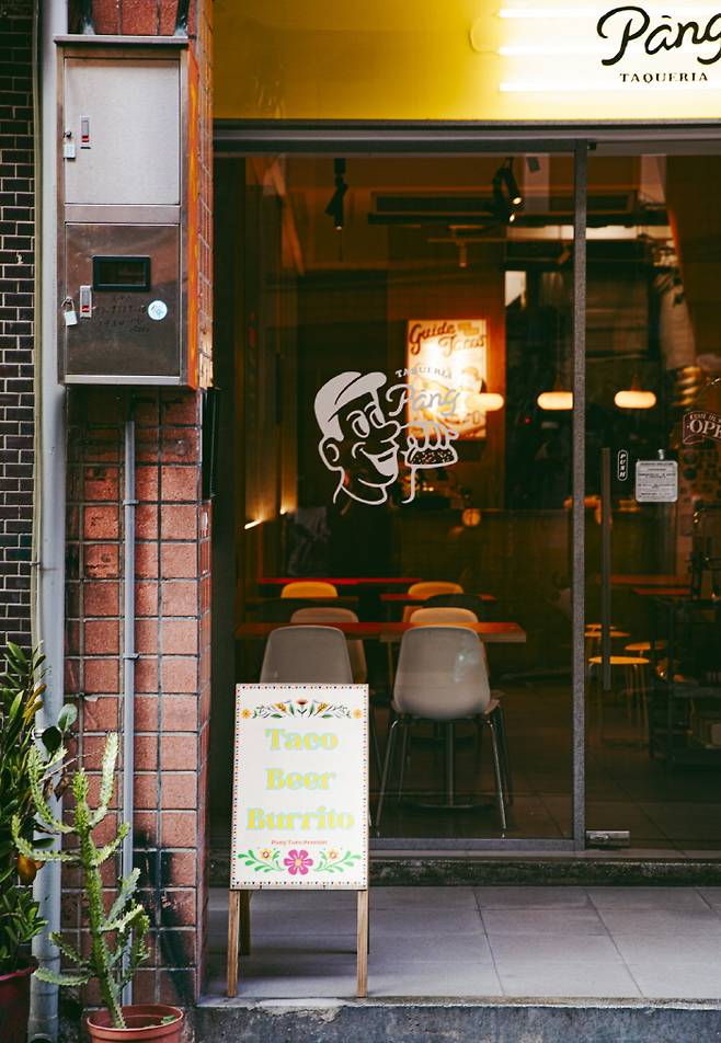 신이안허(Xinyi Anhe)역 4번 출구로 나와 한적한 동네를 걸었다. 사람 대신 감각적인 인테리어를 자랑하는 가구 상점들이 거리를 채웠고, 군데군데 식당과 카페가 근사한 분위기를 더했다. 특히, 강렬한 오렌지색 테이블과 유쾌한 디자인의 캐릭터, 알록달록한 입간판에 시선을 빼앗겼다. 타코, 퀘사디아, 부리토 등 멕시코 음식 전문점 팡 타코다. 타이베이에서 웬 타코를 먹냐 반문할 수 있겠지만 그만한 가치가 있는 맛이다. 이미 미쉐린 가이드 타이베이편에서 빕구르망을 받았을 정도로 인정받은 맛이다.