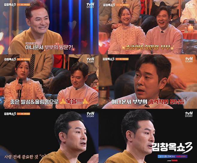 tvN STORY '김창옥쇼3'에 대한민국 대표 아나운서 부부 조충현, 김민정이 출격, 뜻밖의 고민 상담에 나선다.