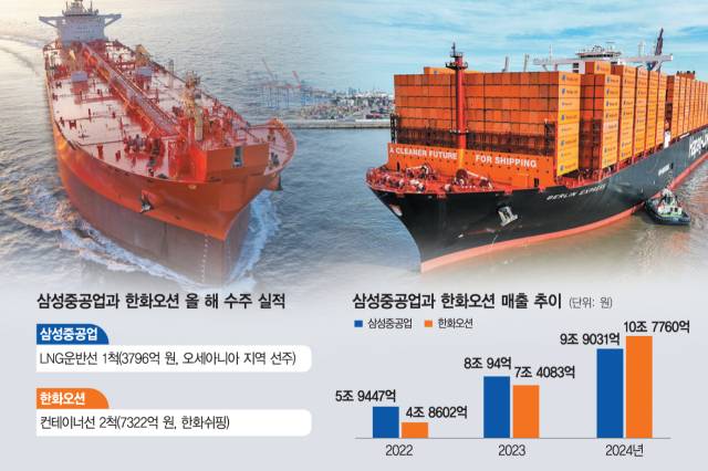 삼성중공업은 올해 매출과 영업이익 목표치를 각각 10조 5000억 원, 6300억 원으로 설정했다. 지난해에는 9조 9831억 원의 매출에 5027억 원의 영업이익을 기록했다. 한화오션은 목표치를 공개하지 않았지만 내부적으로 지난해보다 높은 영업이익을 예상하고 있고, HD한국조선해양(009540) 역시 올 수주 목표치를 180억 5000만 달러(약 26조 930억 원)로 지난해보다 33.7% 높여 잡았다. 업계 관계자는 “미국·인도와의 조선업 협력 가능성에 더해 미국의 대중 견제에 따른 반사이익까지 예상돼 성장 기대감이 어느 때보다 높다”고 말했다.