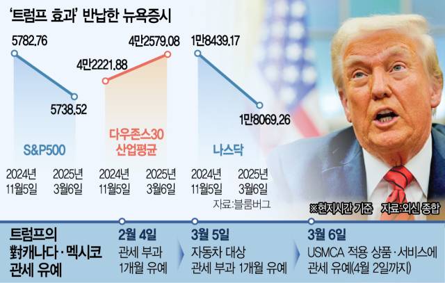 주요 외신들은 ‘엄포→강행→유예’를 반복하는 트럼프의 관세정책이 글로벌 시장에 현기증을 불러일으키고 있다고 지적했다. 실제로 이날 뉴욕 증시에서 스탠더드앤드푸어스(S&P)500(종가 5738.52, -1.78%)과 다우존스30 산업평균지수(4만 2579.08, -0.99%), 나스닥(1만 8069.26, -2.61%) 3대 지수가 일제히 하락했다. 3대 지수 모두 미국 대선일인 지난해 11월 5일 수준으로 낮아졌다.