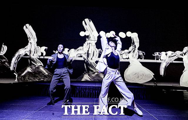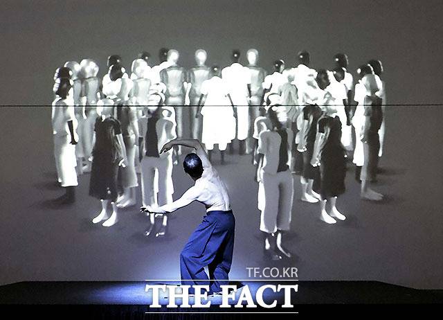 개관식과 함께 진행된 아트포럼에서 앞서 목진요 작가, 허윤정 서울대교수, 차진엽 코레오그라퍼와 무용수들이 퍼포먼스를 펼치고 있다.
