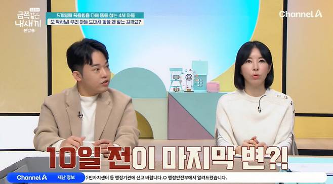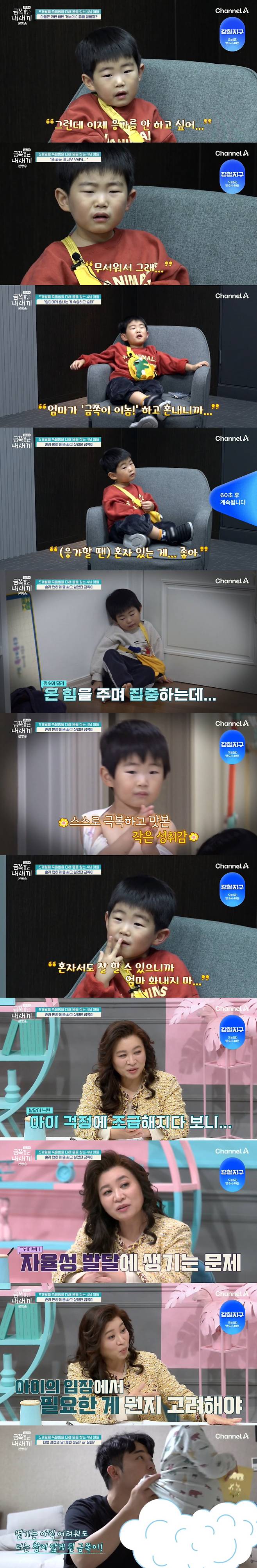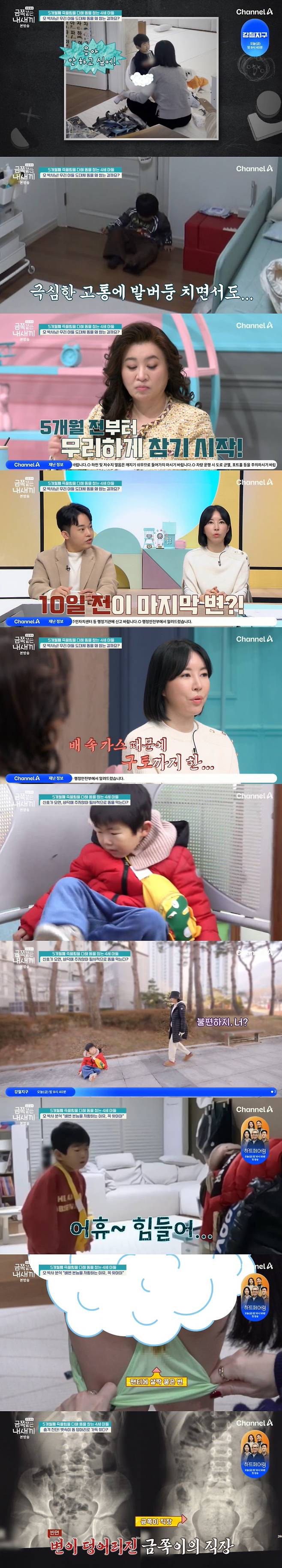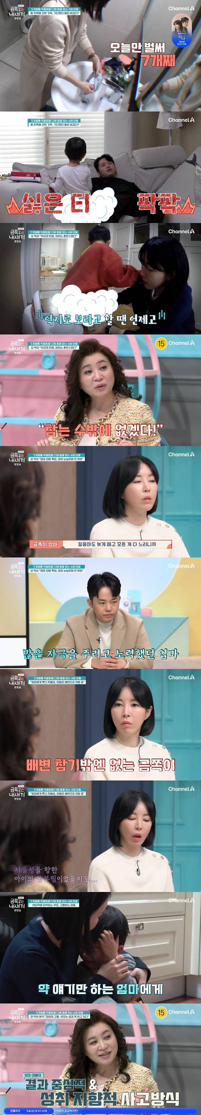 7일 방송된 채널A '요즘 육아 - 금쪽같은 내 새끼'에서는 5개월 전부터 죽을힘을 다해 대변을 참는 만 4세 아들의 사연이 공개됐다.