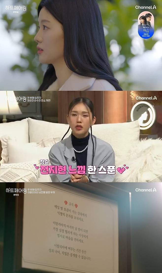 7일 채널A '하트페어링' 첫 회에서 이탈리아 토스카나에 마련된 '페어링하우스'에서 첫 대면한 청춘남녀들이 서로를 탐색하며 설렘과 김장을 교차시키는 현장이 펼쳐졌다.