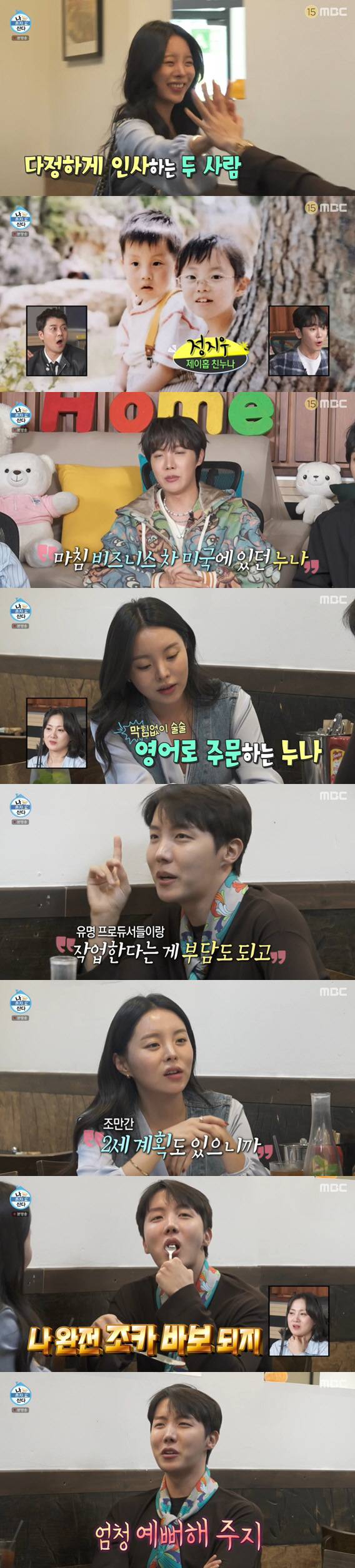식당에서 만난 두 사람은 음식 주문을 했고, 이때 제이홉 누나는 막힘없이 영어로 술술 말해 눈길을 끌었다. 제이홉은 "누나가 어렸을때 유학 생활을 했었다"고 설명했다.