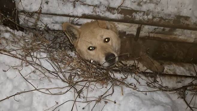 “얘 얼어서 못 움직여” 폭설 내린 밤, 철근에 낀 강아지 [개st하우스]