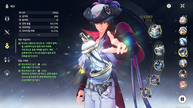 3코스트: 공명 효율 Or 공명 효율 증가 또는 융융 속성 피해 증가