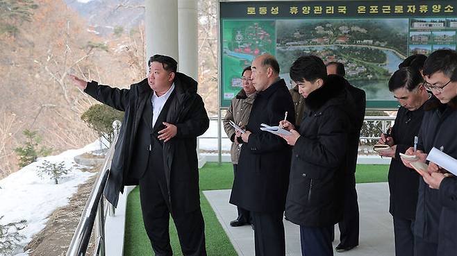▲ 김정은 북한 국무위원장이 함경북도 경성군의 온천 휴양소인 온포휴양소 신설공사 현장을 시찰했다고 조선중앙통신이 8일 보도했다.