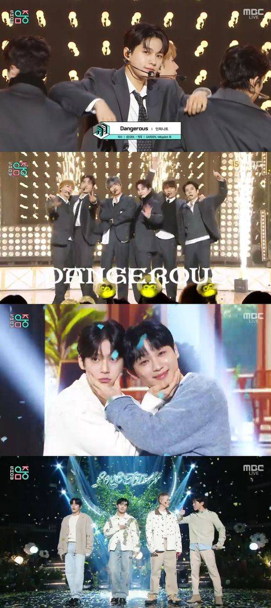 더불어 이날 방송에는 시선을 사로 잡는 컴백 무대가 꾸며졌다. 먼저 인피니트는 ‘Dangerous’ 무대를 선보였다. ‘데인저러스(Dangerous)’는 경쾌한 디스코 펑크 사운드와 에너지 넘치는 리듬이 매력적인 곡이다. 감성적이면서도 리드미컬한 멜로디와 사랑이란 감정에 솔직하면서도 열정이 느껴지는 가사가 인피니트만의 청량함을 아낌없이 보여줬다.
