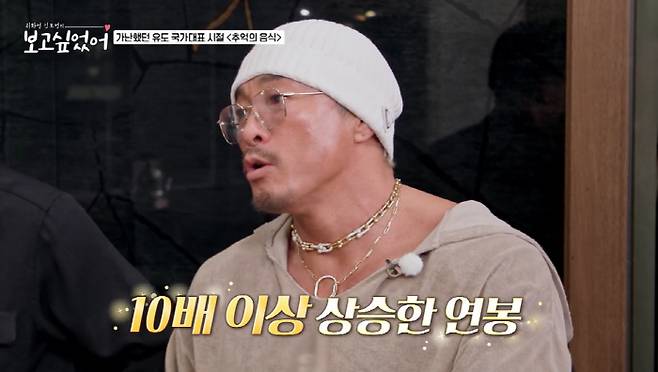 이어 양곱창 먹방을 선보이던 그때 추성훈은 "어렸을 때부터 고기를 좋아하긴 좋아했는데 아무래도 돈이 없으니까 못 먹었다. 한 달에 한번씩 가족끼리 뷔페 가서 먹었다"며 "서른 넘어서 자기 돈으로 사 먹기 시작했다"고 밝혔다. 이어 그는 "격투기 했을 때다. 유도할 때는 돈을 못 벌었다. 격투기 하면서 돈 벌기 시작해서 좋아하는 고기 먹고, 후배들도 챙길 수 있다"고 말했다.