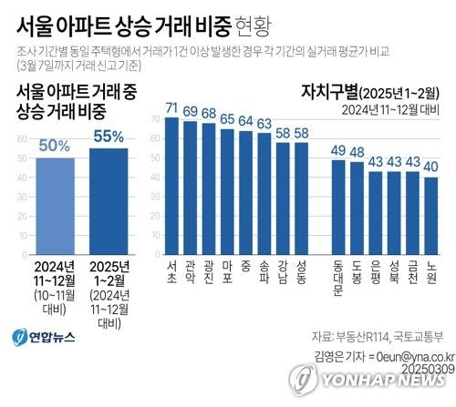 [그래픽] 서울 아파트 상승 거래 비중 현황