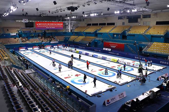 | ▲ 웰컴저축은행 강릉 인비테이셔널 국제컬링대회가 펼쳐지고 있는 강릉 컬링 센터의 모습. |