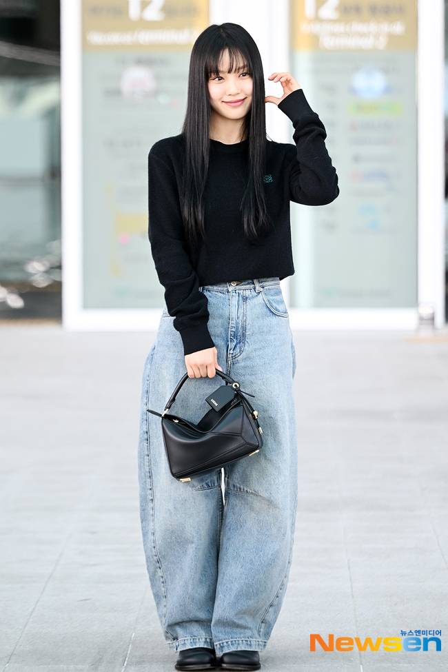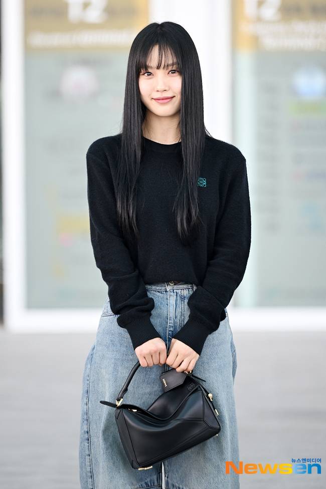 이날 고민시는 영상 10도까지 성큼 오른 날씨를 감안해 가벼운 검은색 니트에 와이드 진을 입고 산뜻하게 공항에 도착했다. 상의를 살짝 바지에 집어넣어 가녀린 허리를 강조한 고민시는 수수한 메이크업에 긴 생머리로 더욱 풋풋한 느낌을 냈다.