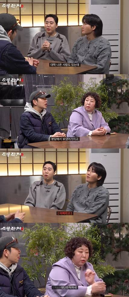 네 사람이 한자리에 모인 가운데 이용진은 "어쨌든 우리끼리 조롱하는 거는 동의 하에 놀리는 다 기분 안 나쁜 농담이고 조롱인데"라며 말문을 열었다.