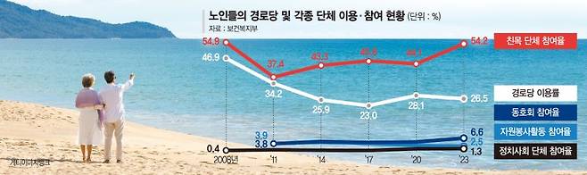 반면 노인들의 친목단체나 정치사회, 동호회 참여율은 증가세를 보이며 이제 단순한 친목을 위해 모였던 경로당보다는 개인의 관심사에 따른 사회적 모임을 더 중요시하는 것으로 나타났다.