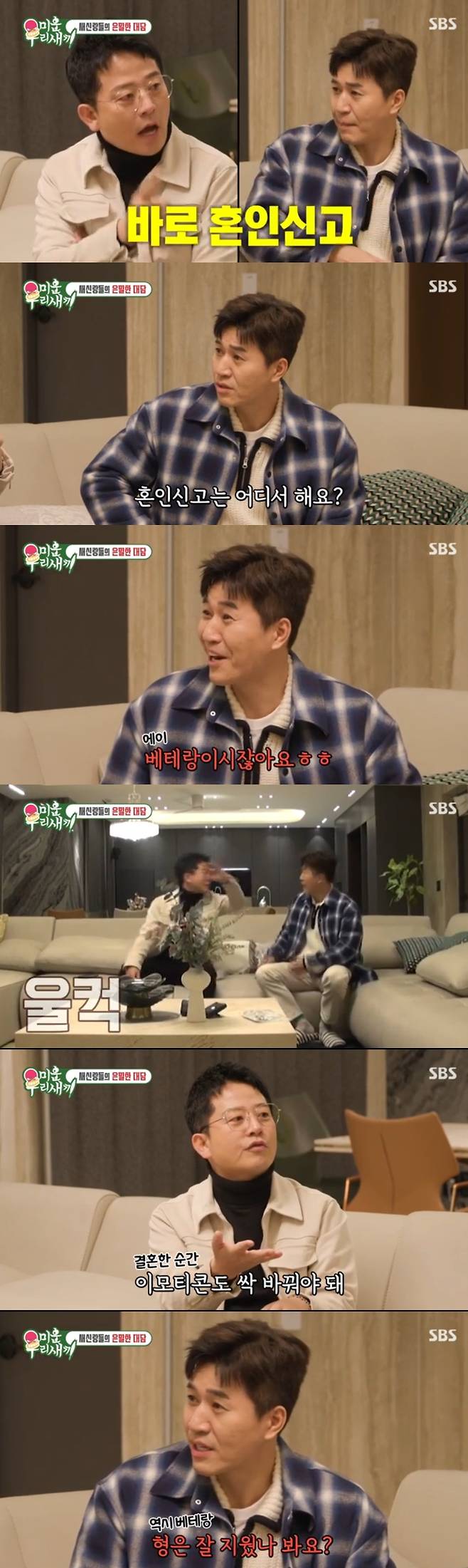 9일 방송한 SBS '미운 우리 새끼'(이하 '미우새')에는 4월 결혼을 앞둔 김종민과 7월 결혼을 앞둔 김준호가 함께 등장했다.