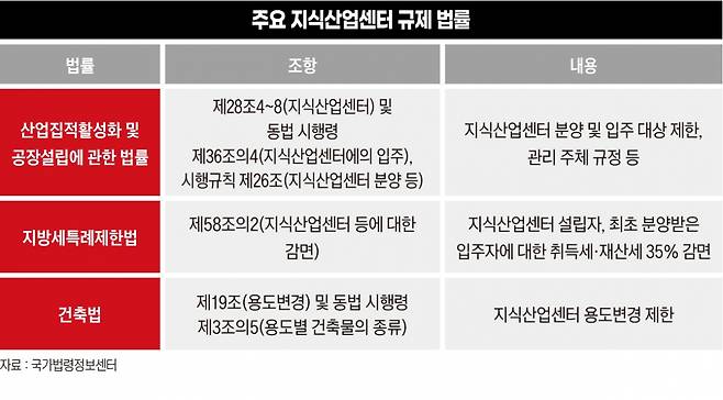 그렇다고 무작정 규제를 풀 수만은 없다. 지식산업센터 규제는 2010년 산업집적법 제정 이후 지속적으로 완화돼왔다. 기숙사 외에 생산시설이나 사무실로 사용되는 지식산업센터를 주거용 오피스텔로 용도변경하기도 사실상 불가능하다. 주거용이 아니라면 상가와 마찬가지로 안정적인 수요와 수익을 보장하기 어렵다.