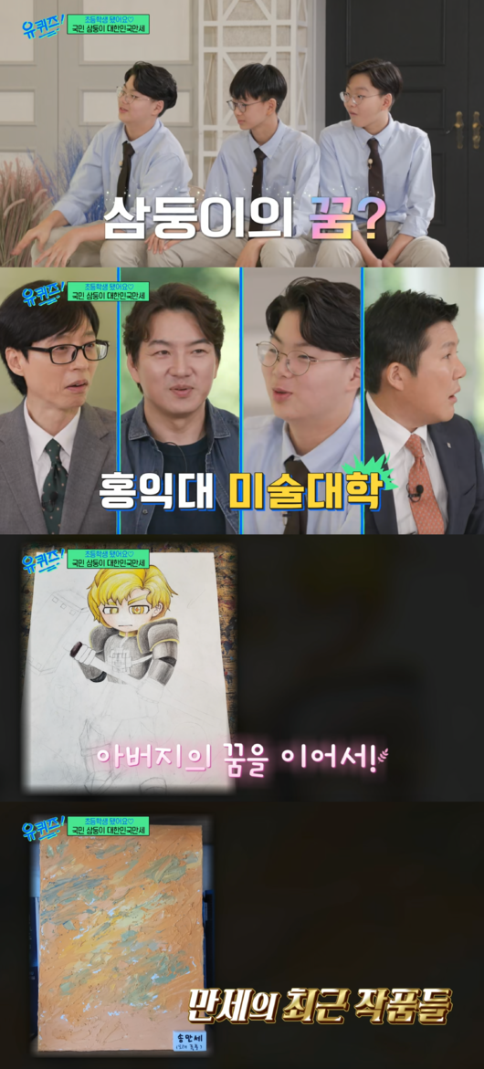 삼둥이들은 지난해 7월 전파를 탄 tvN '유 퀴즈 온 더 블럭'에 나와 조세호 삼촌은 물론 아빠 만큼 훌쩍 큰 키를 자랑했던 바. 당시 '국민 삼둥이’라 불렸던 대한, 민국, 만세는 170cm가 훌쩍 넘는 큰 키를 자랑하는 초등학교 6학년이었고 해가 바뀐 올해엔 어엿한 중학생이 됐다.