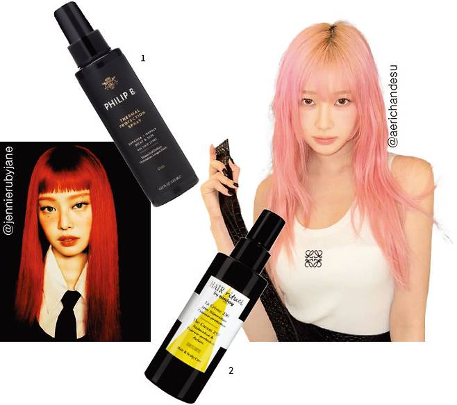 더 늦기 전에 과감한 헤어 컬러에 도전할 계획이라면 다음의 컬러 차트를 참고할 것. 맑고 순수한 이미지의 대명사인 배우 박보영과 로제의 퍼스널 컬러로 꼽히는 블론드를 비롯해 아이돌들 사이에서 꾸준하게 인기몰이 중인 핑크, 제니의 강렬한 레드 헤어가 눈에 띈다. 다만 이렇게 밝고 선명한 헤어로 거듭나려면 보통 일반 모발은 3~4회, 밝은 염색모는 2~3회 정도 탈색해야 한다. 염색 전후 헤어와 두피 케어에 공들이는 것이 무엇보다 중요한 이유다. 샴푸할 때는 반드시 미온수를 사용하길. 뜨거운 물은 모발의 손상을 가속화한다. 드라이 시엔 열을 차단해 모발을 보호하는 기능이 있는 제품을 먼저 발라야 모발 손상을 최소화한다. 또 탈색모는 자외선에 의해 더욱 빠르게 손상되고 변색되므로 매일 UV 차단 기능이 있는 헤어 제품을 꼼꼼하게 사용한다.