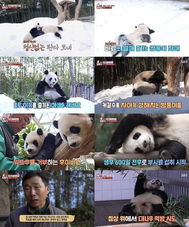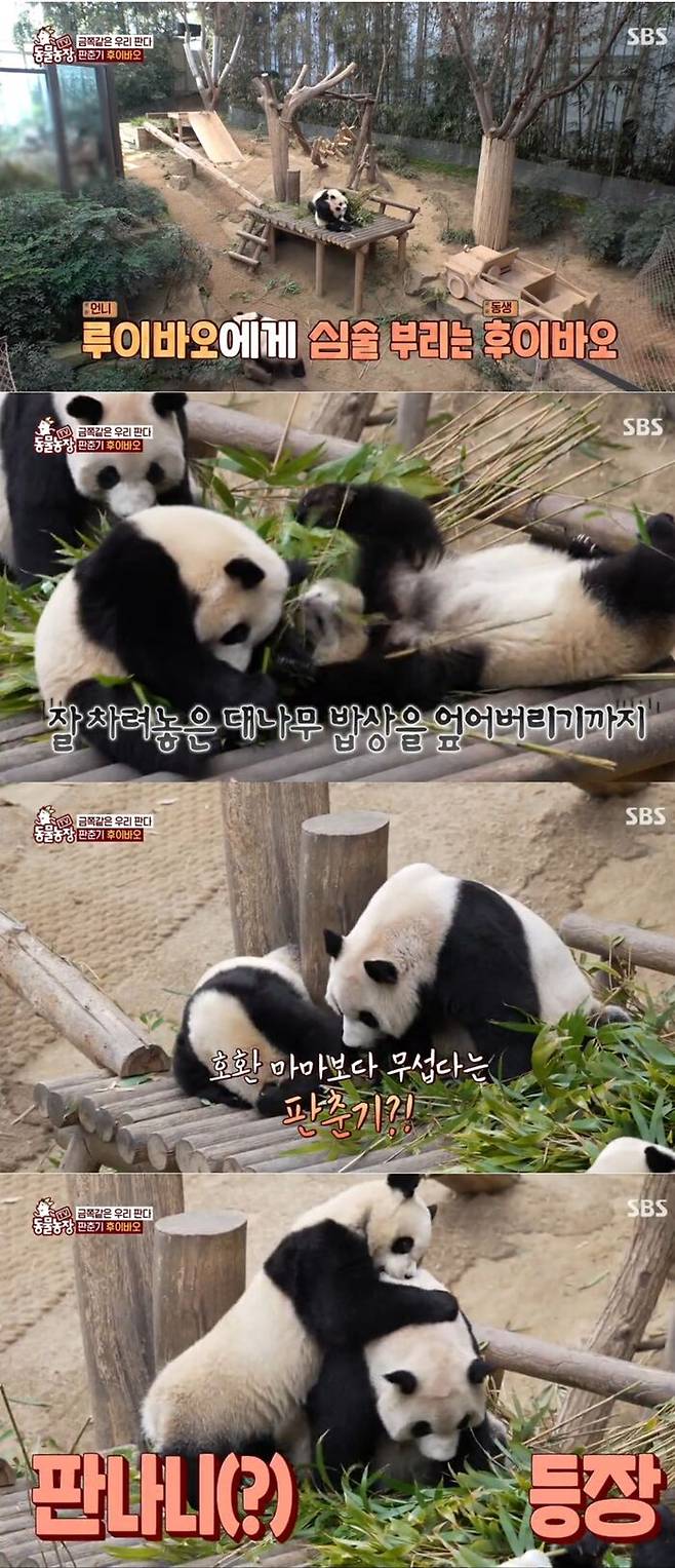 지난 9일 방송된 SBS 'TV 동물농장'은 툭하면 대나무 밥상을 엎고 루이바오와 아이바오에게 달려드는 사춘기 후이바오와 판다 가족의 겨울 일상이 소개됐다.