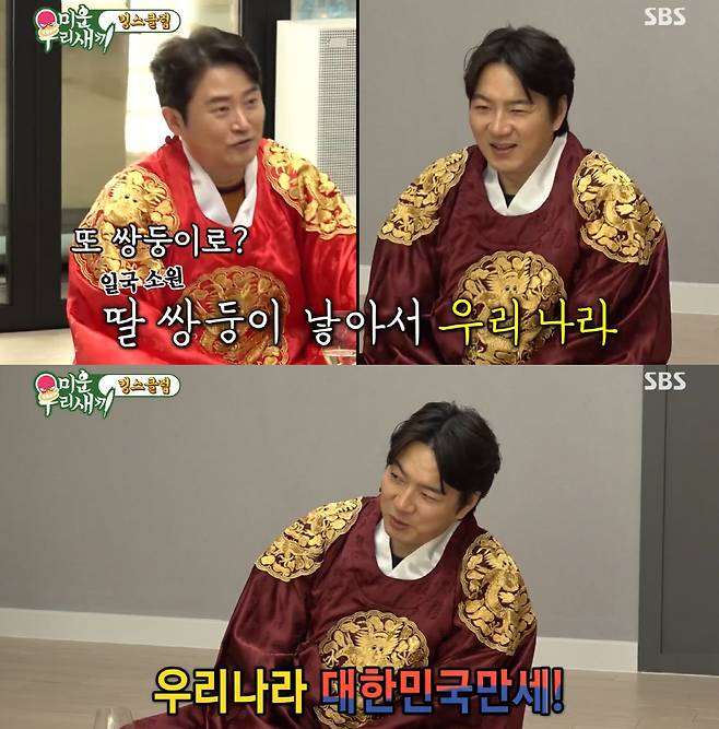 이를 들은 송일국은 "딸 있는 친구들 보면 부럽다. 딸에 대한 로망도 있다. 딸 쌍둥이 이름도 지어 놨다. 우리, 나라 이렇게"라며 딸 욕심이 있다고 털어놔 눈길을 모았다.