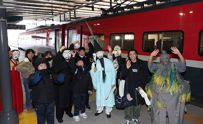 | ▲ 부산∼강릉 간 동해선이 개통한 2025년 1월 1일 강릉역에 도착한 첫 열차 ITX-마음 승객들이 강릉시민들의 환영을 받고 있다. |