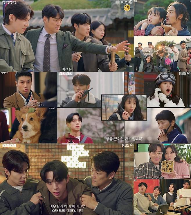 KBS 2TV 수목드라마 '킥킥킥킥'(극본 정수현, 남은경, 정해영 / 연출 구성준 / 제작 DK E&M, 이끌엔터테인먼트)에서 지진희(지진희 분), 조영식(이규형 분) 뿐만 아니라 킥킥킥킥 컴퍼니의 모든 직원들이 예사롭지 않은 팀워크를 자랑하며 매회 시선을 끌고 있다. 회사 설립부터 직원 모집까지 번갯불에 콩 볶아 먹듯 진행됐지만 점점 원 팀에 가까워지고 있는바, 이들의 단합력이 돋보였던 명장면을 꼽아봤다.