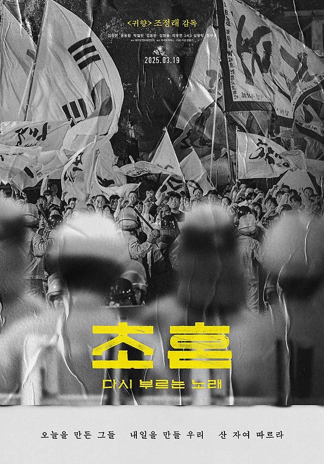 케이팝이 그때의 민중가요처럼 거리에 울려퍼지고, 이젠 기성세대가 그 케이팝을 배워 함께 노래하는 이 시기에 영화 <초혼, 다시 부르는 노래>는 묘한 기시감을 불러일으킨다. 10일 서울 건대입구 롯데시네마에서 언론에 공개된 영화는 단순히 과거의 소환 내지는 민주주의 위기 시대를 한 번 더 깨우치려는 계몽적 역할에 그치지 않고 있었다.