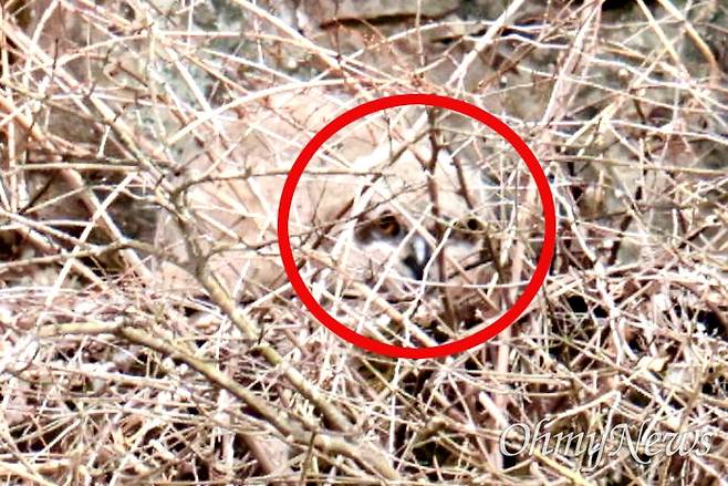 경남 함양 엄천강에서 천연기념물(제324호)이자 멸종위기동물 2급인 수리부엉이가 완벽한 위장을 한 채 새끼를 부화하고 어미는 경계를 서고 있는 장면이 카메라에 잡혔다.